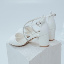 Sandałki Felicia na słupku ecru z cyrkoniowym paskiem [649]