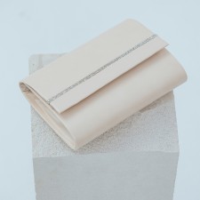 Sandałki Felicia na słupku ecru z cyrkoniowym paskiem [649]