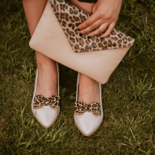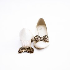 Beautiful brocade bows that add glamor to each pair of shoes.