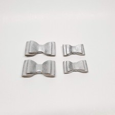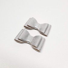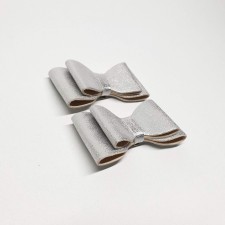 Piękne brokatowe kokardy, która dodają blasku każdej parze butów, DWIE SZTUKI wykoane ze srebrnej skóry licowej.