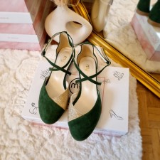 Hit tego sezonu, czółenka na niższym, stabilnym obcasie z zapinaiem krzyżowym na podbicu.