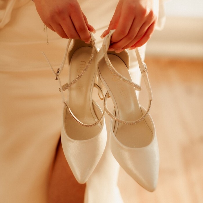 Czółenka ślubne Meghan na słupku z ozdobą z perełkami [824]
