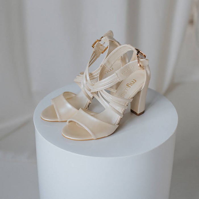 2025 sandałki śmietankowe ivory z paskami z krzyż z...