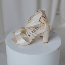 Sandałki Felicia na słupku ecru z cyrkoniowym paskiem [649]