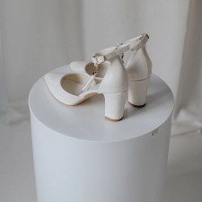 Skórzane czółenka z paseczkiem w cieszącym się niesłabnącą popularnością odcieniu śmietanki to świetna propozycja dla panien młodych, które stawiają na prostotę, elegancję i wygodę na pierwszym miejscu. Sprawdzi się ono idealnie również jako dopełnienie ślubnej kreacji w przypadku, gdy zależy ci na optycznym wyszczupleniu stopy i wydłużeniu sylwetki. Czółenkom w tym odcieniu dobrze będzie w towarzystwie sukni np. w odcieniu brzoskwini, biszkoptu, beżu, ecru, śmietanki czy ivory.