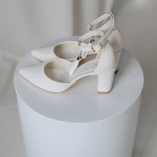 Najbliższa jest ci klasyczna elegancja, a buty, w których czujesz się w pełni kobieco, to czółenka na wyższym obcasie w jasnej kolorystyce? Wobec tego z pewnością spodobają ci się skórzane czółenka w szpic z paseczkiem. Nie dość, że wzmocnią one elegancki charakter ślubnej stylizacji, to w dodatku zapewnią ci komfort na długie godziny zabawy.