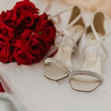 Sandałki brokatowe to to delikatne, idealnie skrojone obuwie ślubne wyposażone w paski pozwalające pozostać stopie na swoim miejscu. Te pełne wdzięku buty stworzą perfekcyjne połączenie z suknią w łagodnym, pastelowym odcieniu, a ponadto świetnie zaakcentują niebieski motyw przewodni wesela.