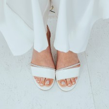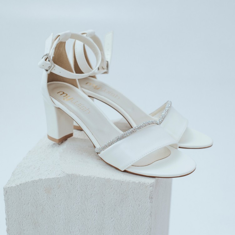 Lubisz prostotę i stonowaną elegancję, a obuwie, które najbardziej preferujesz, to proste sandałki? W takim razie postaw na sprawdzone rozwiązanie w postaci skórzanych sandałków w odcieniu śmietanka ivory. Wystarczy, że dobierzesz je do kreacji np. w odcieniu śmietanki, biszkoptu, ecru czy beżu, a gwarantujemy, że powstanie elegancka i pełna delikatnego blasku stylizacja ślubna.