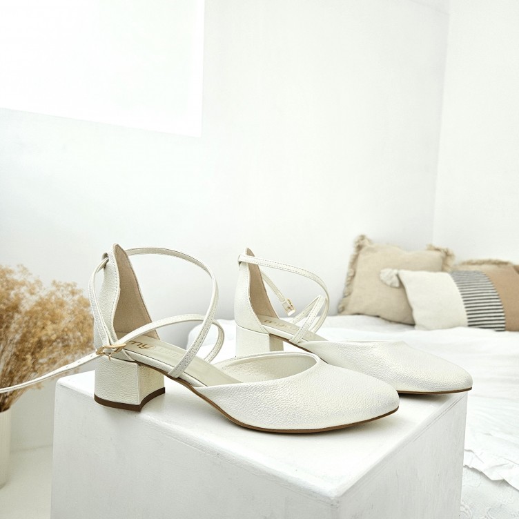 Jesteś na etapie kompletowania ślubnej garderoby i poszukujesz delikatnych czółenek w pastelowym odcieniu, które idealnie wpasują się w estetykę całej uroczystości? Co powiesz w takim razie na czółenka Cecilia z paseczkami na krzyż? Ten wyjątkowy model ślubnego obuwia w odcieniu szampańskim nie dość, że będzie współgrał z każdą kreacją ślubną, to jeszcze w dodatku będzie spójny z estetyką całego wesela.