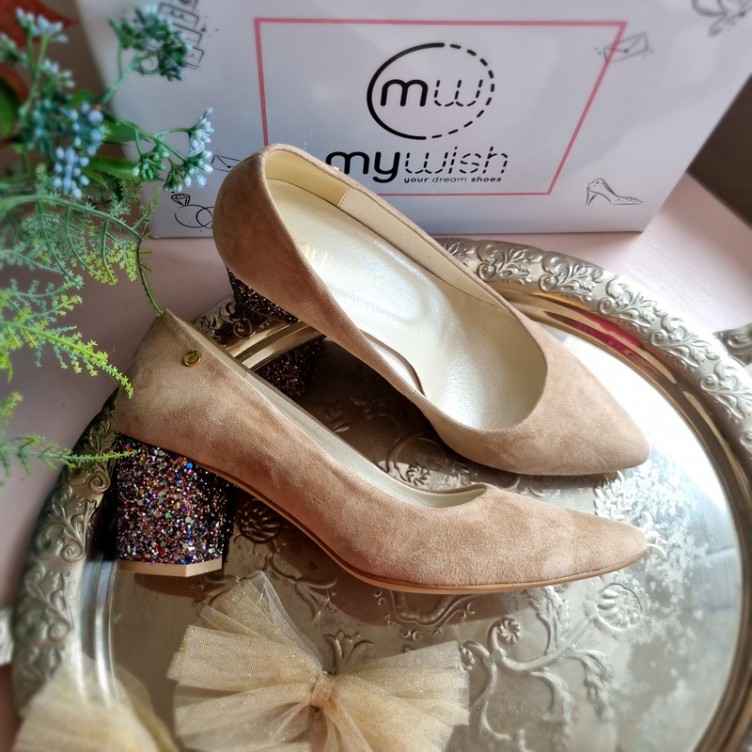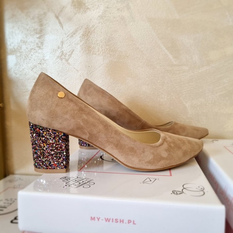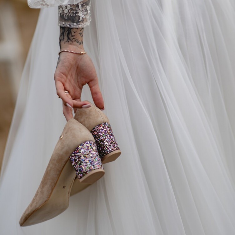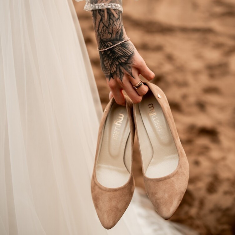 Eleganckie i modne buty ślubne, które byłyby przy tym wygodne i stabilne? To możliwe! Wystarczy, że wzbogacisz ślubną stylizację o czółenka w szpic na niskim obcasie Nude, a będziesz mogła się przekonać na własnej skórze, co to znaczy elegancja połączona z wygodą. Ten wyjątkowy model ślubnego obuwia z efektownym akcentem w postaci obcasa mieniącego się drobinkami brokatu sprawdzi się w parze z wszelkimi kreacjami w ciepłych odcieniach.