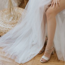 Polecamy wyjątkowy model ślubnych sandałków na stabilnym obcasie pokrytym skórą.