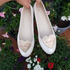 Zestaw zawiera 2 pary serduszek na słupku z nadrukiem. Ozdoby mocowane są na specjalnie zaprojektowanym klipsie do obuwia, który dobrze się trzyma, jest bezpieczny dla stopy oraz nie przeszkadza w chodzeniu. Szyjemy je z tych samych materiałów co suknię ślubną, dzięki czemu masz pewność, że idealnie będą do niej pasowały. Stanowią też doskonałe uzupełnienie innych butów.