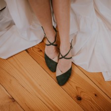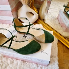 Chcesz prezentować się na ślubie elegancko i z gracją, ale nie czujesz się komfortowo w butach na wysokich obcasach? Nic nie szkodzi! W skórzanych płaskich czółenkach ślubnych z paseczkiem w odcieniu butelkowej zieleni będziesz wyglądać nie mniej elegancko i kobieco niż w szpilkach, a w dodatku czuć się wygodnie i pewnie nawet po długich godzinach poruszania się.