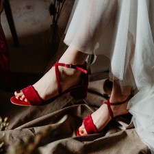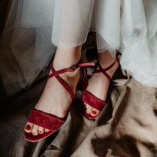 Nie dość, że stanowią klasykę i elegancję same w sobie, to jeszcze odznaczają się dużą wygodą. Zamszowe ślubne sandałki na słupku w bordowym kolorze, bo o nich mowa, to idealne rozwiązanie dla panien młodych, dla których prostota i swoboda muszą iść w parze z szykownością. Będą stanowiły znakomite dopełnienie romantycznej i zwiewnej sukni boho w ciepłych odcieniach.