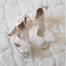 Czółenka ślubne Meghan na słupku 5,5 cm perłowe z kokardą...