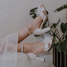 Wygodne, a przy tym stylowe buty ślubne? To możliwe! Jeśli w pierwszej kolejności stawiasz na wygodę i elegancję, a twoim wymarzonym obuwiem są przykuwające uwagę sandałki na paseczki, które idealnie będą trzymać stopę, proponujemy ci wyjątkowy model czółenek ślubnych na obcasie pokrytym skórą, jakim są czółenka ślubne Meghan.