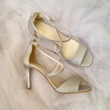 Jesteś zwolenniczką stonowanej elegancji, uwielbiasz złoty kolor, a twój ulubiony rodzaj butów to idealne skrojone, delikatne sandałki? W sam raz dla ciebie będą więc sandałki Felicia na grubszej szpilce w kolorze srebrny brokat. Z jaką suknią możesz połączyć to obuwie? Między innymi z taką w odcieniu srebrnym. Do tego oczywiście obowiązkowo srebrna biżuteria i od razu stylizacja ślubna zyskuje na atrakcyjności.
