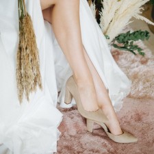 Na co dzień bliska ci jest klasyka i pragniesz pozostać jej wierna także w dniu ślubu? Polecamy zatem dobrać do kreacji ślubnej buty, które stanowią kwintesencję klasycznej elegancji i minimalizmu: zamszowe czółenka Boho na słupku. Wraz z koronkową suknią ślubną boho w odcieniu ecru, brzoskwini czy neutralnego beżu prezentować się będą jako wspaniale przemyślana całość.