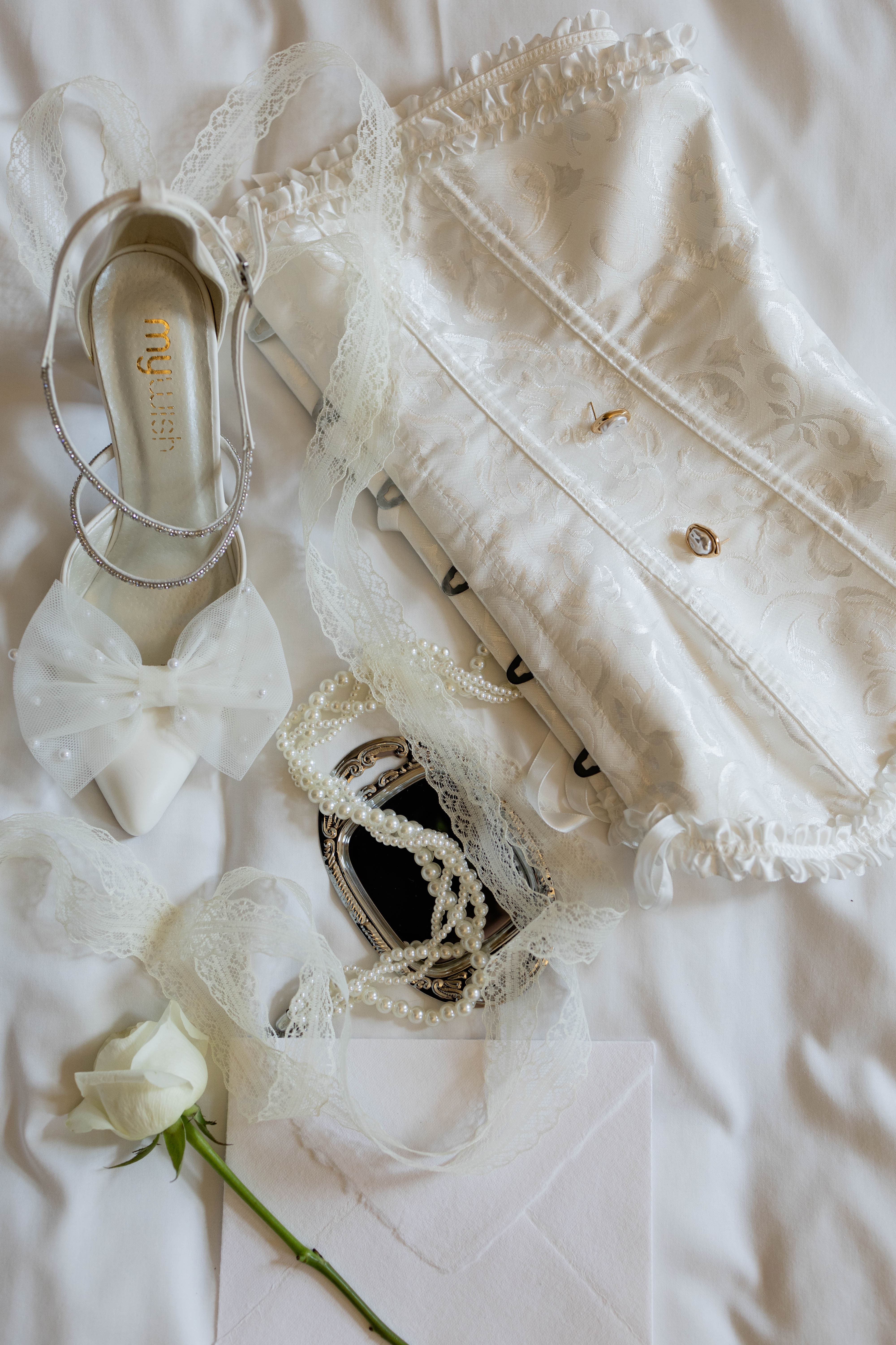 Perły w stylizacji lubią grać główne skrzypce. Wszystko inne jest dla nich tłem. W dniu ślubu warto więc skupić się na tym, by podbijały urodę Panny Młodej, a nie odciągały od niej uwagę. Stawiamy więc na dewizę „mniej znaczy więcej”. Zamiast ciężkiego, obszernego naszyjnika warto pomyśleć o pojedynczym sznurze lub kolczykach. Dużą popularnością cieszą się obecnie kultowe już prace Vivienne Westwood. Warto jednak pokombinować z mniej oczywistymi dodatkami, takimi jak chociażby spinki czy inne dodatki do włosów. Jeszcze bardziej nieoczywistym rozwiązaniem będą buty. Tutaj sprawdzą się perłowe zapięcia, kokardy a nawet… sam kolor. Opalizująca biel sama w sobie wywoła efekt nie do podrobienia.